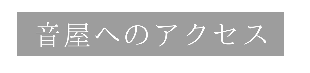 JR総武線(新宿だと16番線)東中野駅東口下車、改札を右に階段降りると正面に交番があります。そこを右に(コンビニのファミリーマートを曲がる)交差点もそのまま真っすぐに行くと、セブンイレブン、200m先の左側にさくら歯科と中華料理屋の生駒軒があります。その2軒先が音屋です。徒歩7分
