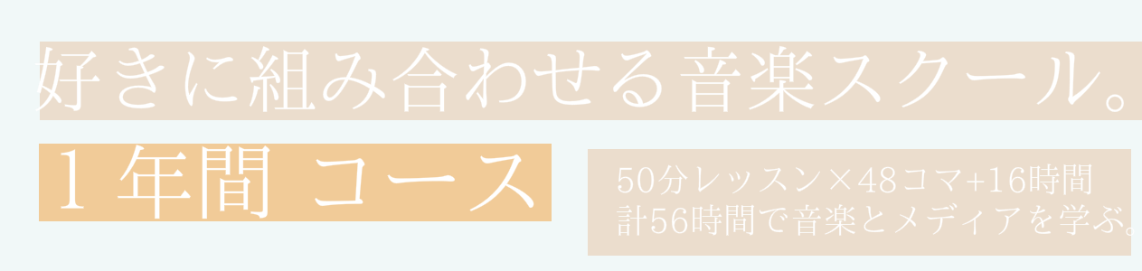 50分 音楽レッスン×48コマ=40時間+ メディアレッスン×16時間で